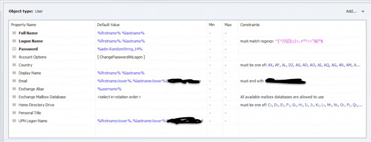 Here's the scenario. We are trying to create the following user using the self service user account creation wizard in Adaxes -
