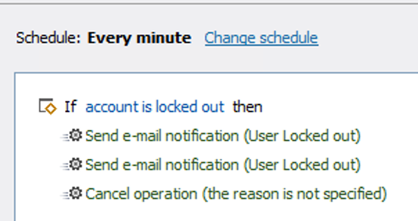 I try to create a scheduled task that checks every minute for locked out users and sends a mail if there is any locked out users.