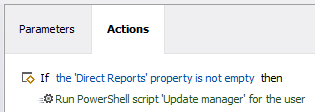 Unfortunately, there is no possibility to have such an interaction. As a solution, you can use an AD object picker parameter in your deprovisioning Custom Command. The parameter will specify a user that will be set as manager for direct reports of the deprovisioned account if it has any. To update the manager, use the below script. In the script, the $newManager variable specifies the name of the Custom Command parameter used to specify the new manager with the param- prefix.