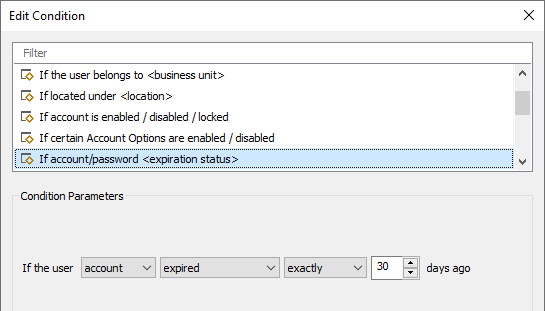 how do i manage do get adaxes to remove all groups from the user after one month?